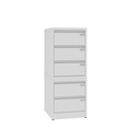 Cabinet made of 0.7 mm thick steel. Wing doors with hidden hinges. Door handles equipped with a lock mechanism securing the doors in two points. Shelves are adjustable every 25 mm, adapter to be used with hanging files. Cabinet with sliders placed in the bottom for easy rearrangement. Load capacity is 65 kg per shelf. Cabinets equipped with levelling feet mounted by the customer at the place of use. The cabinet (1,99 m high) has holes for fixing it with fixed elements (building wall, another product, etc.).